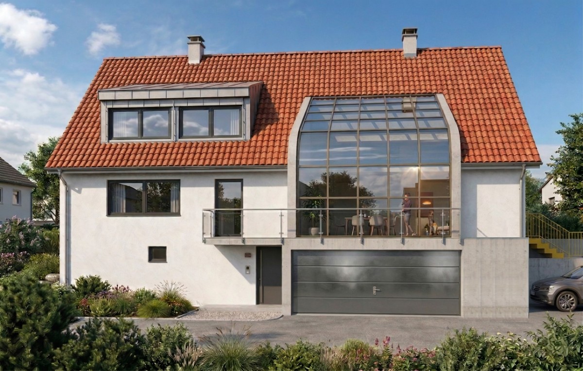 Zusammenführen eines Doppelhauses mit Neubau einer Garage, welche gleichzeitig als Balkon nutzbar sein soll. Die Arbeiten werden komplett in Eigenleistung ausgeführt.