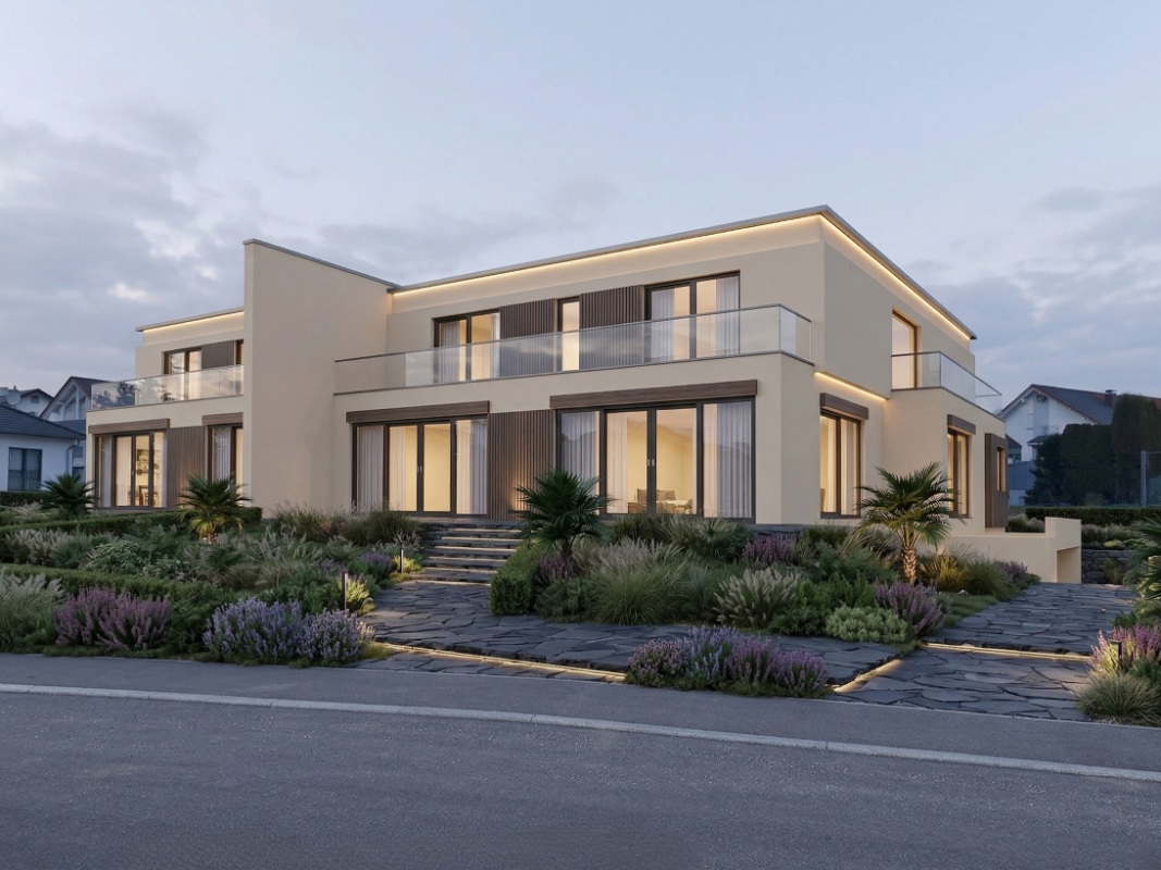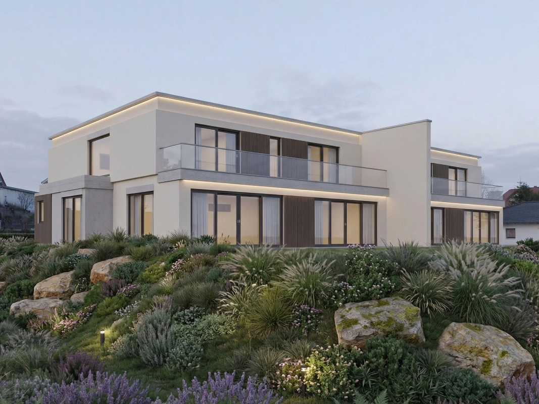 Planung, Ausführung und Bauleitung für ein Doppelhaus mit Garagen