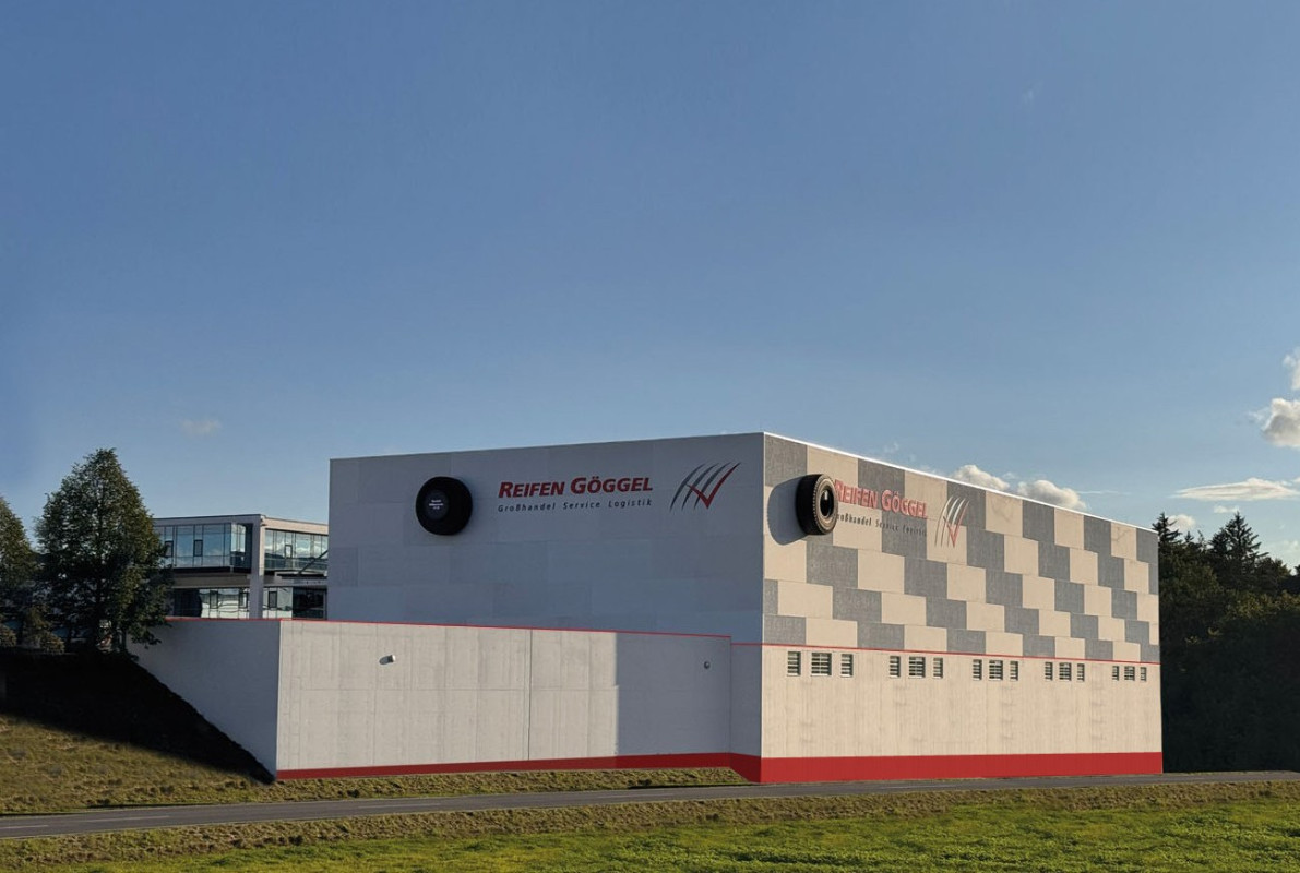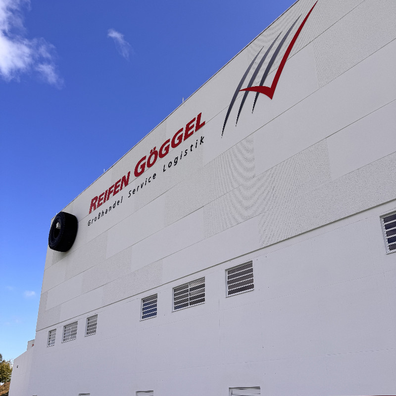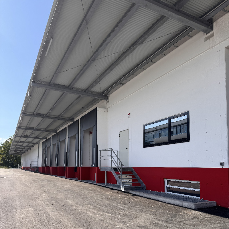 Bau einer beeindruckenden, zweigeschossigen Halle zur Lagerung von Reifen. Es handelt sich um eine neu errichtete Halle, die dank ihres großflächigen Formats die Lagerung sehr großer Mengen an Reifen ermöglicht.