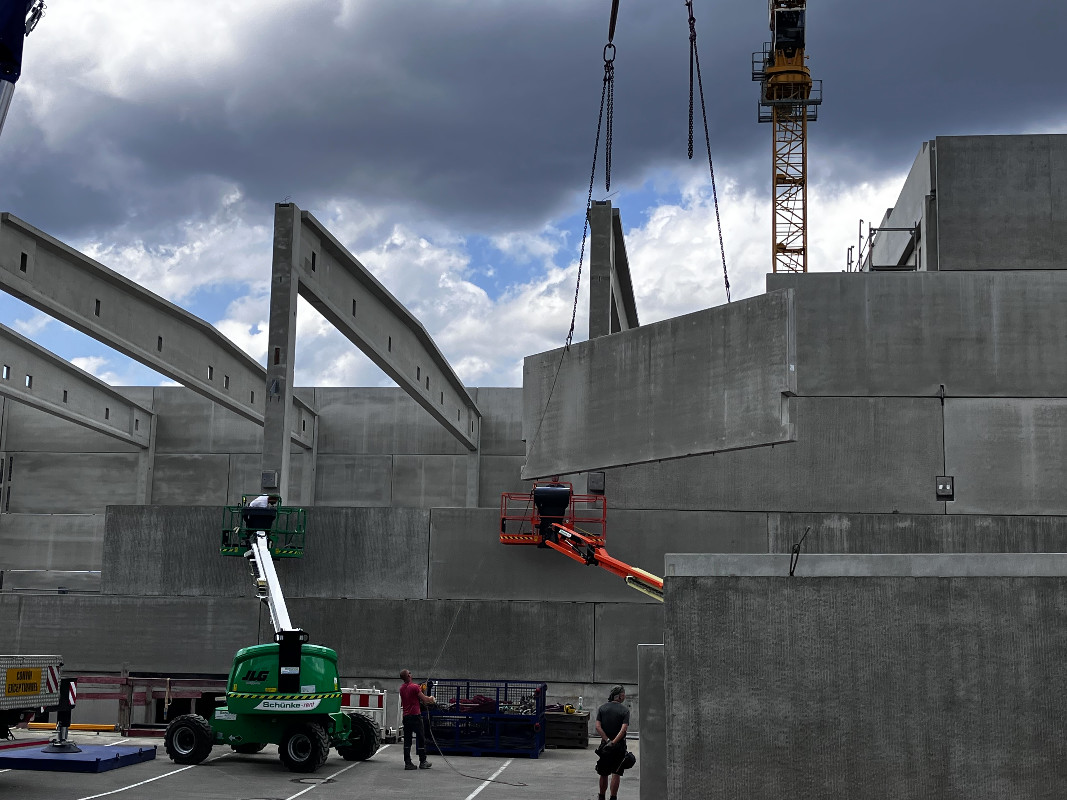 Um diesen Effekt zu erzielen, wurden Stahlbetonträger eingesetzt, die an ihrem höchsten Punkt eine Höhe von über eineinhalb Metern erreichen.