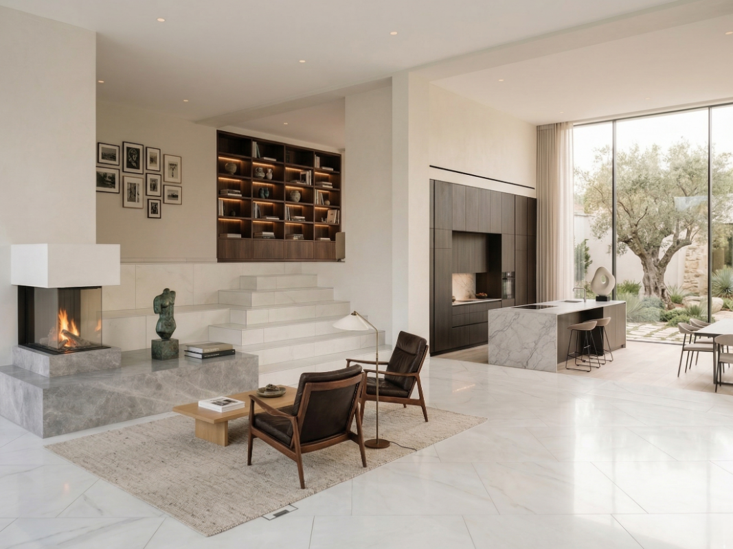 Das Wohnhaus wurde an der Westseite durch einen eingeschossigen Kubus im Bereich der ehemaligen Terrasse erweitert. Die bestehende Stahlbalkonkonstruktion wurde dabei gekürzt und statisch in den neuen Baukörper integriert. Auf dem Flachdach des Anbaus entstand eine großzügige Terrasse, welche den alten Balkon im Obergeschoss ersetzte. Der vorhandene Tiefhof wurde geringfügig vergrößert, um bündig mit der neuen Außenkante des Anbaus abzuschließen. Abschließend wurden die Entwässerung und das Heizungssystem direkt an die bestehenden Anlagen des Hauptgebäudes angeschlossen.